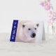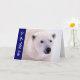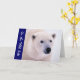 One of the world's largest land predators, the polar bear or "sea/ice" bear can be found in the Arctic, Alaska, Canada, Norway, Russia, and Denmark. With no natural predators except humans, the polar bear is free to roam the wild and search for food. Hunting restrictions have ensured that the polar bear populations remain strong in areas where they live. This photograph captures the beauty, power and wonder of this large animal in detail. A vibrant blue was chosen as the background colour on this card to represent the cold frozen environment this bear calls home. Create your own personalised card. Text can be added to the front of this card and on the inside as well. Use the "Customise" tab when ordering to create your one-of-a-kind card. Create a unique gift set by ordering Polar Bear and companion items, wrapped up in a Polar Bear tote bag.