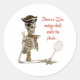 Play me all who dare, ye badminton landlubbers! Beat me, and ye shall walk the plank this Halloween! Badminton pirate skeleton gives fair warning.