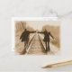 Send that special someone who you would go anywhere with a note on this postcard of a couple balancing on the rails together.