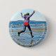 Button with famous Glumpism: "It's a lot easier to walk on water after the tide goes out," and photo by Stuart Grinnell