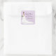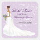 A bride serenely walks down the aisle on this lovely bridal shower sticker. The background is a pretty damask purple pattern overlaid with swirly floral vines, while the bride's bouquet and earrings match the purple. Available in alternate colours with matching products and options for different bride ethnicities. Please contact this store for customising this sticker to specific bridal colours.