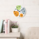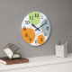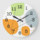 Abstract Art Wall Clock -- This modern, designer clock features abstract shapes in orange, green and blue that was inspired by the atomic art movement of the 1950s. Retro and modern vibe.