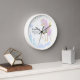 Wall Clock for a baby shower featuring an adorable unicorn with wings, bunting and castle.