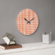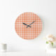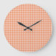 Wall Clock, Orange and White Check Gingham Large Clock