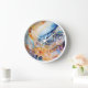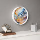 Add a unique accent to your interior with this abstract style wall clock. The delicate combination of watercolour shades of blue, orange and lavender with gold accents creates a sophisticated art effect. This clock is perfect for the living room, bedroom, office or studio, adding a touch of modernity and elegance. They combine stylish design and functionality, making them the perfect decoration and a great gift for modern art lovers.