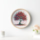 Wall clock with the decoration of a tree with red fruits of love.