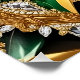 This captivating wall poster showcases the iconic black, green, and gold of Jamaica’s flag in a bold and contemporary design. The 3D-like porcelain effect, combined with intricate jewellery-inspired details, creates a visually stunning piece that celebrates Jamaica’s culture while adding a touch of elegance to any room.