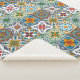 Hand-painted talavera inspired tiles in green, red, navy and yellow