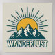 Wanderlust Retro Teal Mountain Sunrise Hiking Art Poster