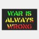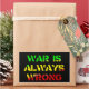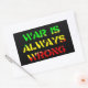 War Is Always Wrong stenciled in green, yellow, and red on black.