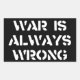 War Is Always Wrong stenciled on black.