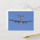 A postcard featuring a photo of the B-29 bomber known as "Doc" as it flies above.