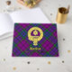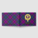 Clan Wardlaw crest badge surrounded by a strap and buckle over tartan background. Custom front, back and spine text.