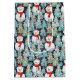 Christmas gift bag with snowmen in warm red scarves and a pretty blue pine tree background.