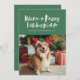 Send warm and fuzzy holiday wishes with this one-photo vertical card featuring fun modern type on a festive green. Perfect for pet photos but it also works well for family photos too. The back is a matching festive Christmas red with white speckles.