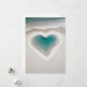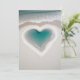 A heart-shaped pool of water with aqua hues is nestled within a sandy beach, surrounded by foamy waves. The ocean meets the shore in the background, creating a serene and romantic scene.