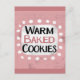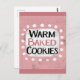 "Warm baked cookies" is a fun text design with a white accent shape surrounded by white whimsical textured dots.