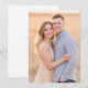 This wedding invitation features a warm, intimate photograph of a couple embracing in an outdoor setting. The design showcases earthy tones with shades of beige and muted blue, creating a harmonious and serene ambiance. Captured in a candid style, the image emphasizes natural beauty and affection, perfect for couples seeking a heartfelt and relaxed theme. The composition focuses on the emotional connection between the subjects, making it ideal for celebrating love and companionship.