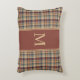 Warm Brown and Cream Plaid Monogram Decorative Cushion