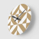 Warm Brown Geometric Deco Cube Pattern Round Clock