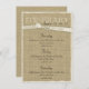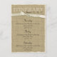 The rustic look of burlap and a vintage white bow is printed Itinerary.