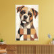 A warm geometric mosaic portrait of a boxer in earthy browns, cream and tan. Patchwork Boxer combines playful character with sculptural tile rhythm, bringing personality to modern interiors.