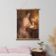 The polyester fabric displayed many wrinkles and several sharp creases throughout. At the bottom of the tapestry, I noticed a bulge in the fabric because it was not pulled tight enough before being connected to the wooden boards. It took me over an hour to spay water on the tapestry before putting it on an ironing board where I used a warm iron over a polyester cloth to remove the wrinkles and creases in the material. I was able to get out the wrinkles and creases that made that tapestry look as beautiful as its picture.