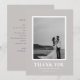 A modern wedding thank you card with a warm grey background and bold white typography. Clean and minimalist in style, this design highlights your wedding photo while keeping the overall look elegant and timeless.