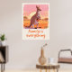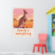 A gentle kangaroo with a smiling joey in her pouch stands against a peach‑pink outback sunset, paired with the heartfelt hand‑lettered message “Family is everything” for cosy nursery and family room decor. Soft warm tones, textured illustration, and clear theme keywords enhance emotional appeal and search visibility while following Zazzle metadata guidelines.