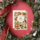 The card includes the message: "Sending many wishes for the most joyful holiday season and a happy new year!" in elegant, cursive and sans serif fonts that complement the intricate design. Perfect for spreading holiday cheer, this card design blends traditional and modern elements, making it a sophisticated choice for Christmas greetings. Don't forget to personalise the long form message text on the back, complete with a family name sign off.