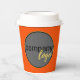 Simple design for business branded drinkware against a warm orange colour. This simple design has a company logo on each side so that the user will see it at all times. It has many designs, but including use in hospitality and catering sectors - such as in a coffee shop, cafe, bar, diner, and so on - and with the eye-catching orange would be great for use in seasonal events such a Halloween or a celebration of the Autumn or Fall Season.