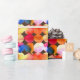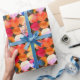 A colourful watercolour abstract art painting with warm orange, red and yellow round circles in a pattern design to show the melding colour patterns.