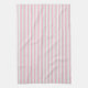 A homey, clean design of vertical, warm pink ticking stripes on white background.