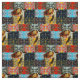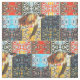 Rectangular patches of loopy designs and sea turtle images in warm colours pattern this pretty fabric.