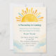 A warm sunrise design inspired by glowing horizon tones and soft morning light. The radiant sun motif creates a calm and joyful atmosphere, perfect for celebrating a new arrival. Blending gentle warmth with a clean, modern aesthetic, this sunshine theme captures the beauty of a peaceful sunrise and the excitement of a baby shower celebration.