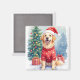 Warm Watercolor Golden Retriever Christmas Tree Magnet