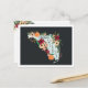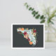 Send greetings from the sunshine state with these charming postcards featuring a silhouette map of the state of Florida adorned with oranges, lush greenery, and tropical flowers on a dark background with a white border. "Warm Wishes" appears in white hand lettered typography inside the shape of the state, along with your family name or choice of greeting. Add a custom pre-printed message to the back if desired.
