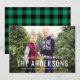 Send warm greetings with a full-photo design featuring bold family-name typography and a clean “Warm Holiday Wishes” message. Crisp white lettering keeps the look modern while letting your photo shine. The coordinating back features classic green buffalo plaid for a cozy cabin finish. Personalize the year and family names for a polished keepsake.