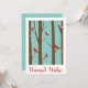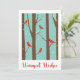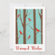 Illustrated red cardinals sitting on tree branches while snow falls, all on a teal background. Warmest Wishes at the bottom in a deep red colour. On the back, the same teal background, one photo, your holiday message and family name, with snow falling in the background.