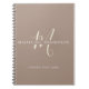 This notebook design highlights a large elegant monogram in script, paired with clean uppercase lettering for the name. Minimal text in the lower middle adds a subtle touch, creating a modern, professional, and sophisticated look.
