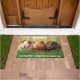 Welcome guests with charm and a touch of humour with this delightful doormat featuring three adorable guinea pigs sitting amidst vibrant green grass. The doormat proudly displays the message: 'Warning! This property is protected by guinea pigs,' adding a fun and quirky statement to your doorstep. Perfect for guinea pig enthusiasts, this doormat combines a playful design with practicality, making it an ideal addition to any home. Durable and eye-catching, it's sure to bring smiles to all who visit! generativecontent