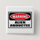 Warning ALIEN ABDUCTEE Button you can customise at www.WarningSignShirts.com and features a red and black warning sign and ALIEN ABDUCTEE in bold black letters to warn the world. You can also customise your own warning sign Button with the text you want.