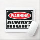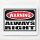 Warning ALWAYS RIGHT Mousepad