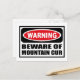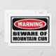 Warning BEWARE OF MOUNTAIN CUR Postcard you can customise at www.WarningSignShirts.com and features a red and black warning sign and BEWARE OF MOUNTAIN CUR in bold black letters to warn the world. You can also customise your own warning sign Postcard with the text you want.