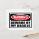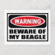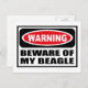 Warning BEWARE OF MY BEAGLE Postcard you can customise at www.WarningSignShirts.com and features a red and black warning sign and BEWARE OF MY BEAGLE in bold black letters to warn the world.  You can also customise your own warning sign Postcard with the text you want.