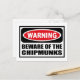 Warning BEWARE OF THE CHIPMUNKS Postcard you can customise at www.WarningSignShirts.com and features a red and black warning sign and BEWARE OF THE CHIPMUNKS in bold black letters to warn the world.  You can also customise your own warning sign Postcard with the text you want.