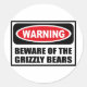 Warning BEWARE OF THE GRIZZLY BEARS Sticker