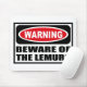 Warning BEWARE OF THE LEMURS Mousepad you can customise at www.WarningSignShirts.com and features a red and black warning sign and BEWARE OF THE LEMURS in bold black letters to warn the world. You can also customise your own warning sign Mousepad with the text you want.