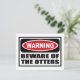 Warning BEWARE OF THE OTTERS Postcard you can customise at www.WarningSignShirts.com and features a red and black warning sign and BEWARE OF THE OTTERS in bold black letters to warn the world. You can also customise your own warning sign Postcard with the text you want.