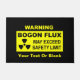 A black and yellow warning sign with text reading, "WARNING, BOGON FLUX, MAY EXCEED SAFETY LIMIT." A radioactive material warning symbol also appears. Add your own additional text. The bogon is an elemental particle which carries the property of bogosity, or being bogus (i.e., fake of bad). All humans are natural low-level bogons emitters. Emission levels fluctuate over time. Politicians, other individuals such as used car salesmen, are high level sources of bogons. When such individuals emit extremely high levels of bogons, as when making campaign promises, a bogon flux may occur. A bogon flux can be very dangerous to those in the area. Bogon was originally hacker jargon having to do with bogus addresses on a computer network.